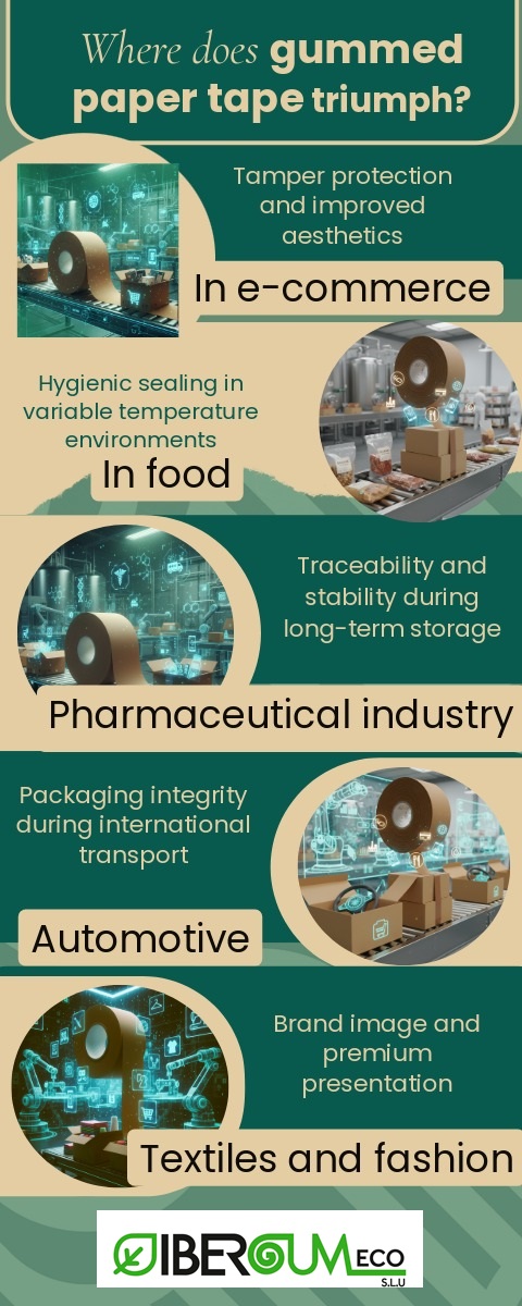 This infographic highlights where and how gummed paper tape drives efficiency, protection, and environmental responsibility.